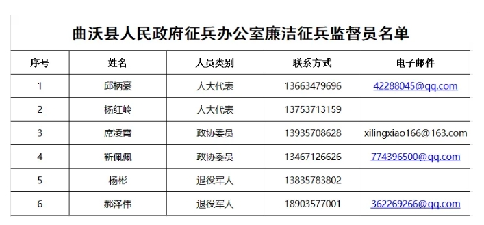曲沃縣廉潔征兵監(jiān)督員信息公示,歡迎社會各界予以監(jiān)督